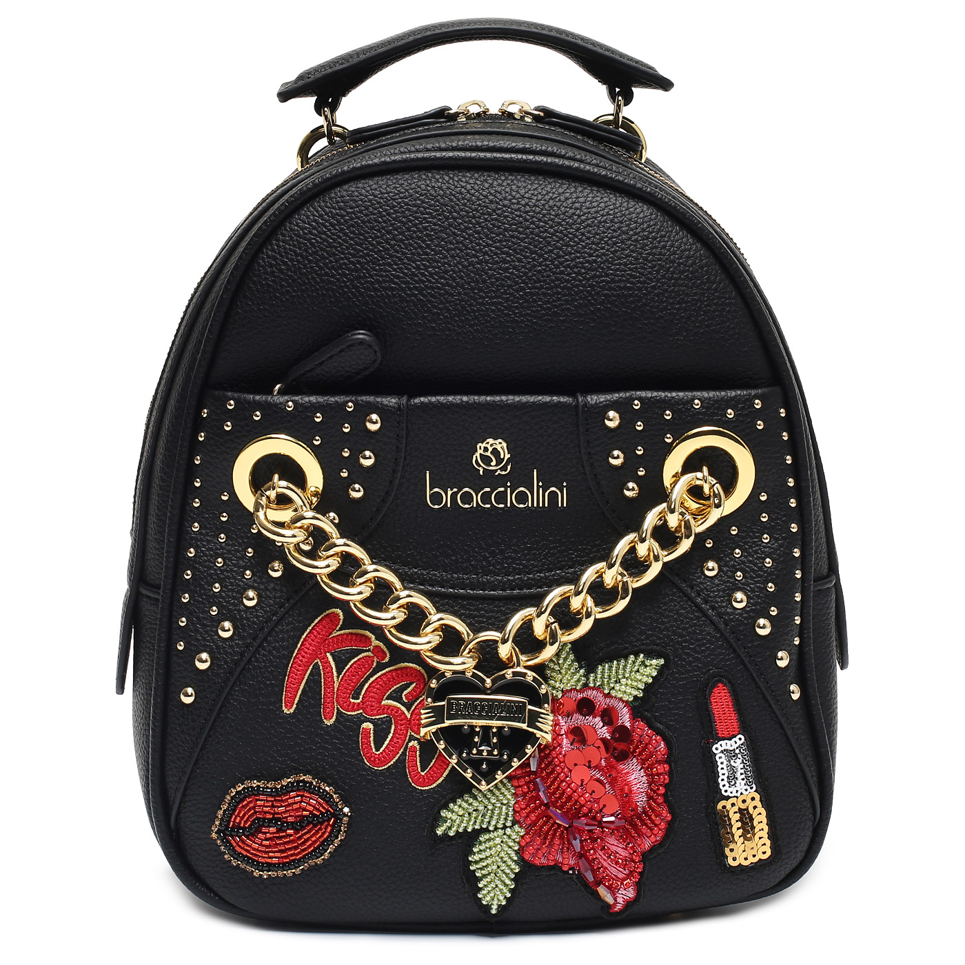 Рюкзак с вышивкой и клепками Braccialini Rock B17904-YY_nero_pc - 2000558716376 черный полиэстер, полиуретан 23 x 26 x 12,5 Цена 20390 руб. купить в интернет-магазине PanChemodan.ru в Москве