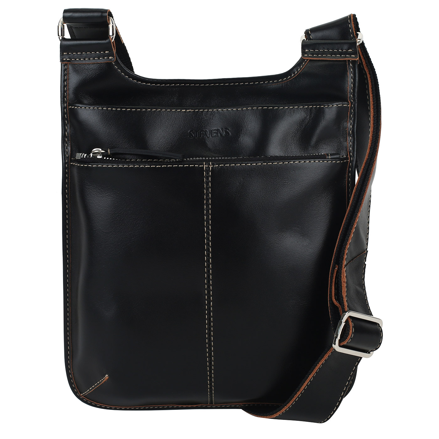 Кожаная сумка через плечо Stevens AS15S/TX01_pc - 2000558519687 черный натуральная кожа 23 x 28 x 3 Цена 10780 руб. купить в интернет-магазине PanChemodan.ru в Омске